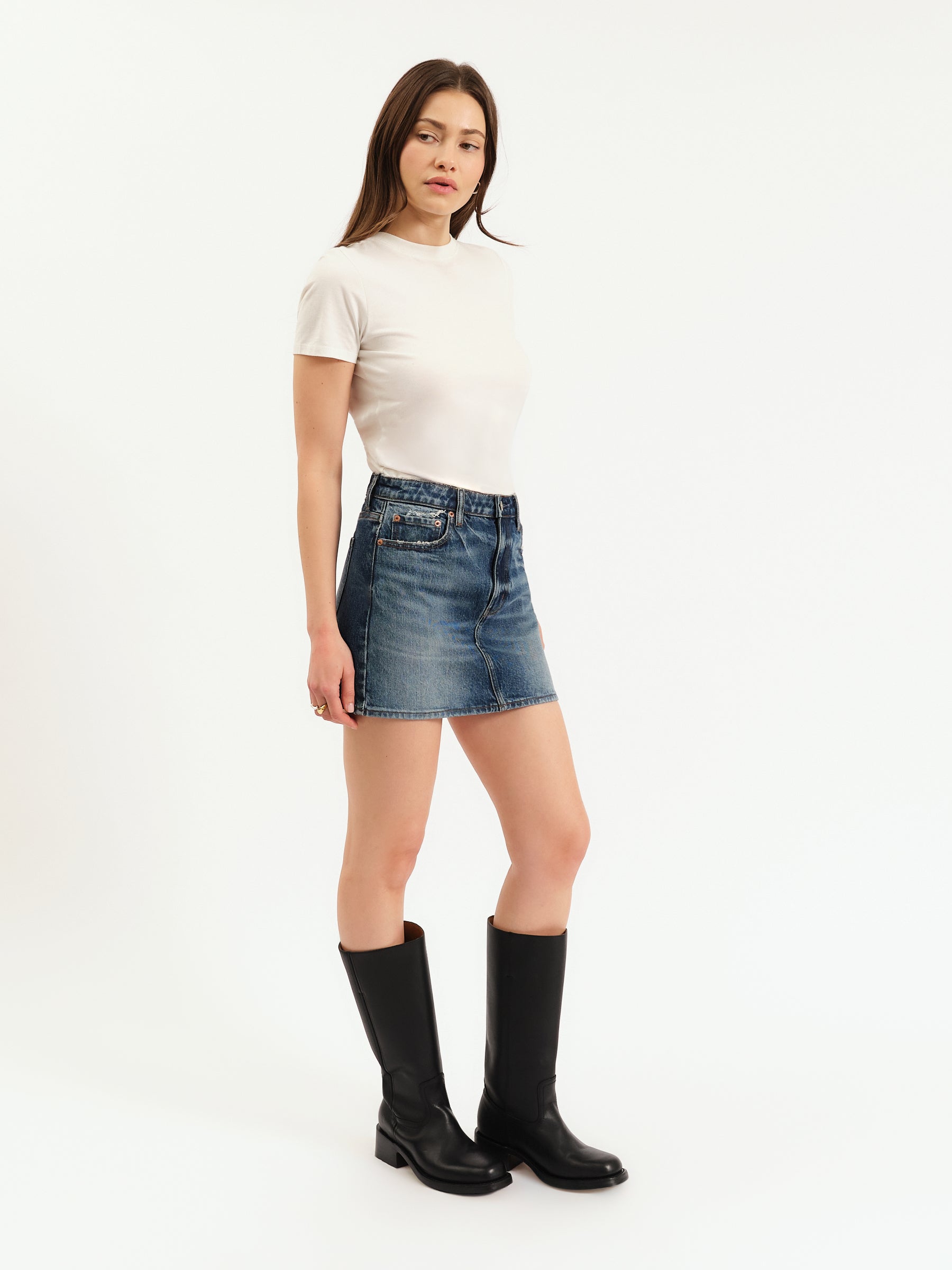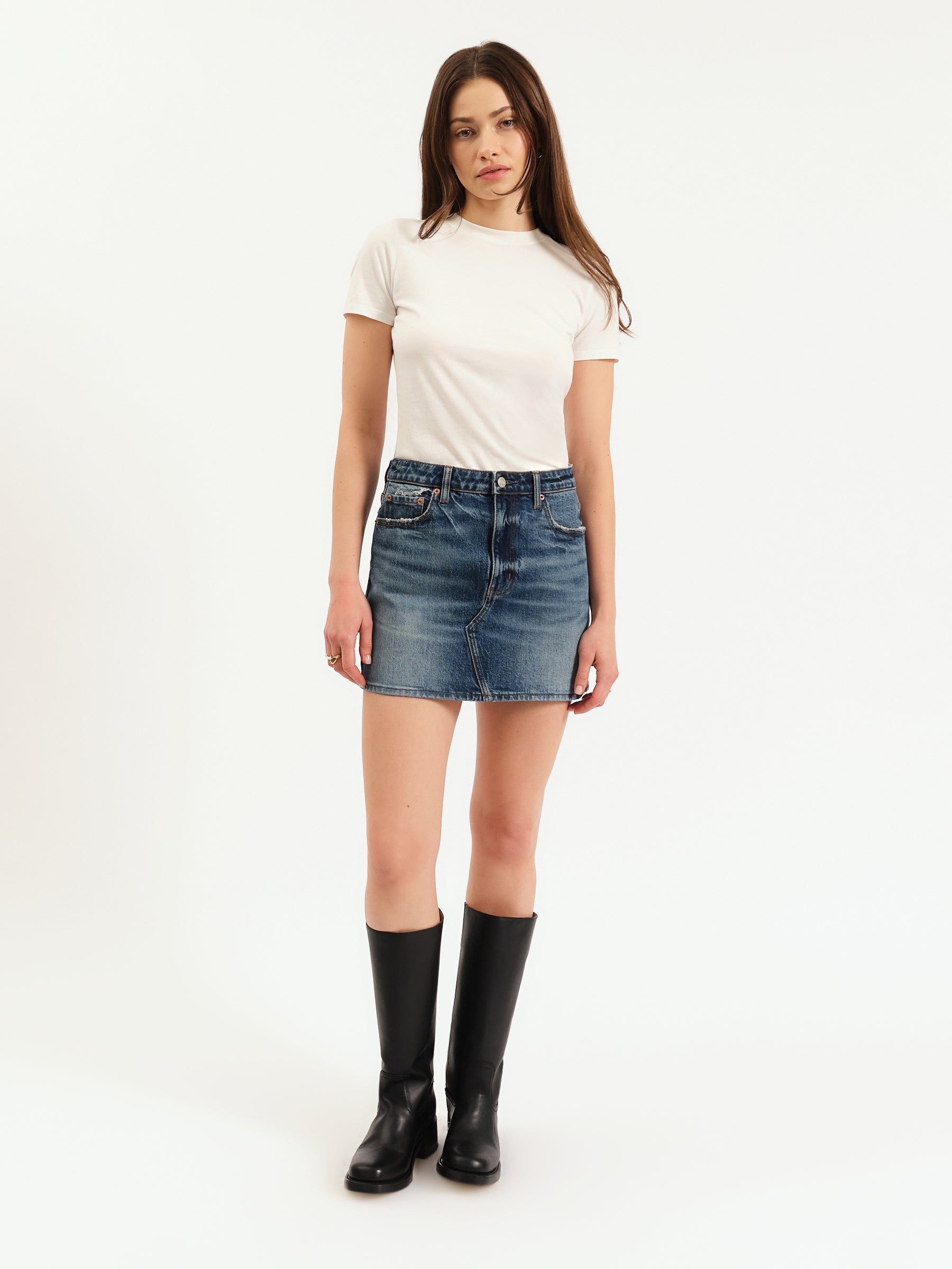 The Malibu Mini in Authentic is an easy little denim mini in the perfect dark indigo wash. Whiskering and fading throughout make this skirt look like an authentic vintage score.