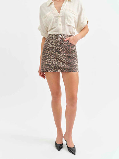 The Malibu Mini in Cool Cat is an easy little denim mini with a tan and black cheetah inspired print. Constructed from our Tough Love Fabric, this short is mostly rigid but yields to your body in all the right ways.