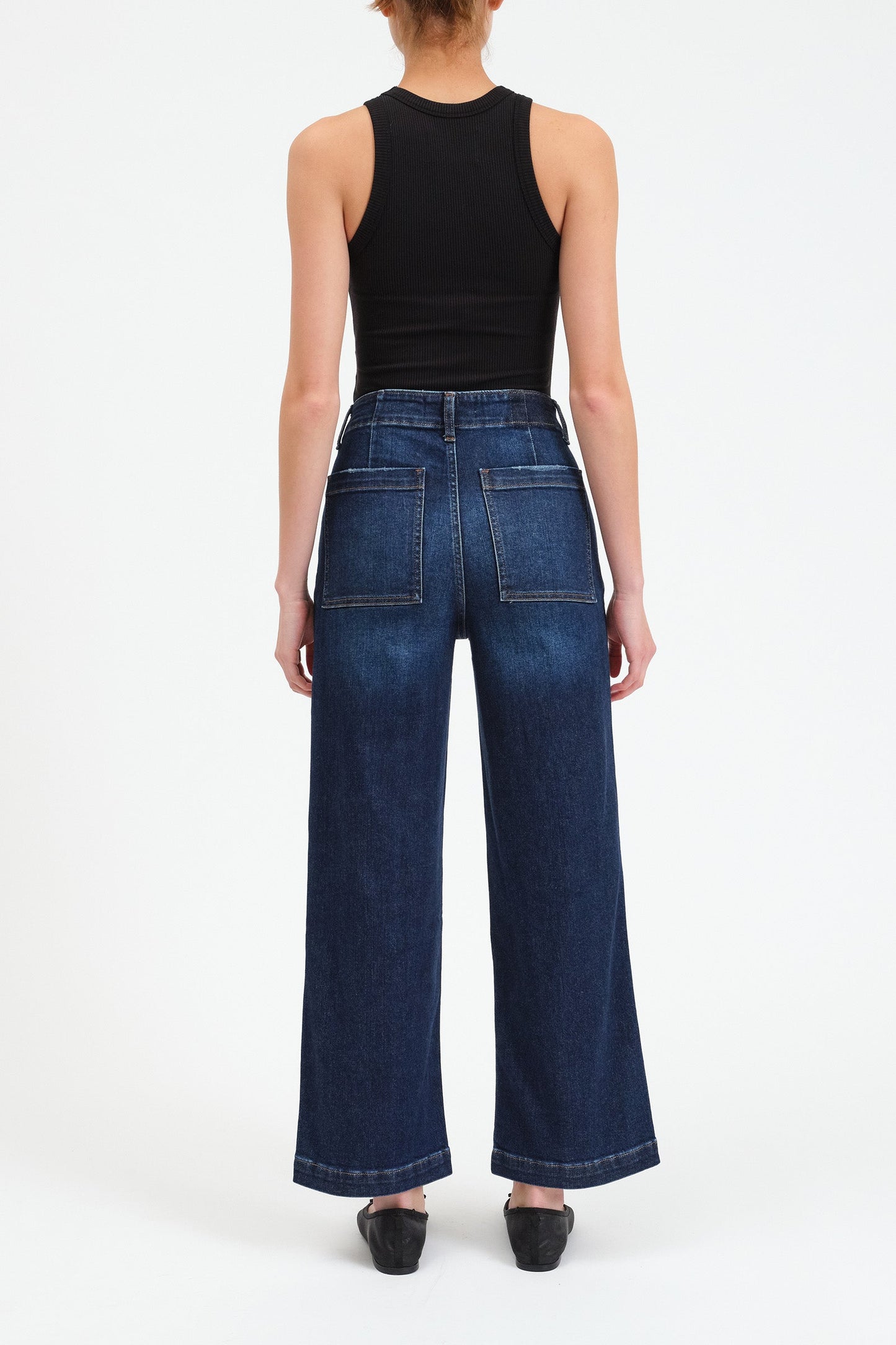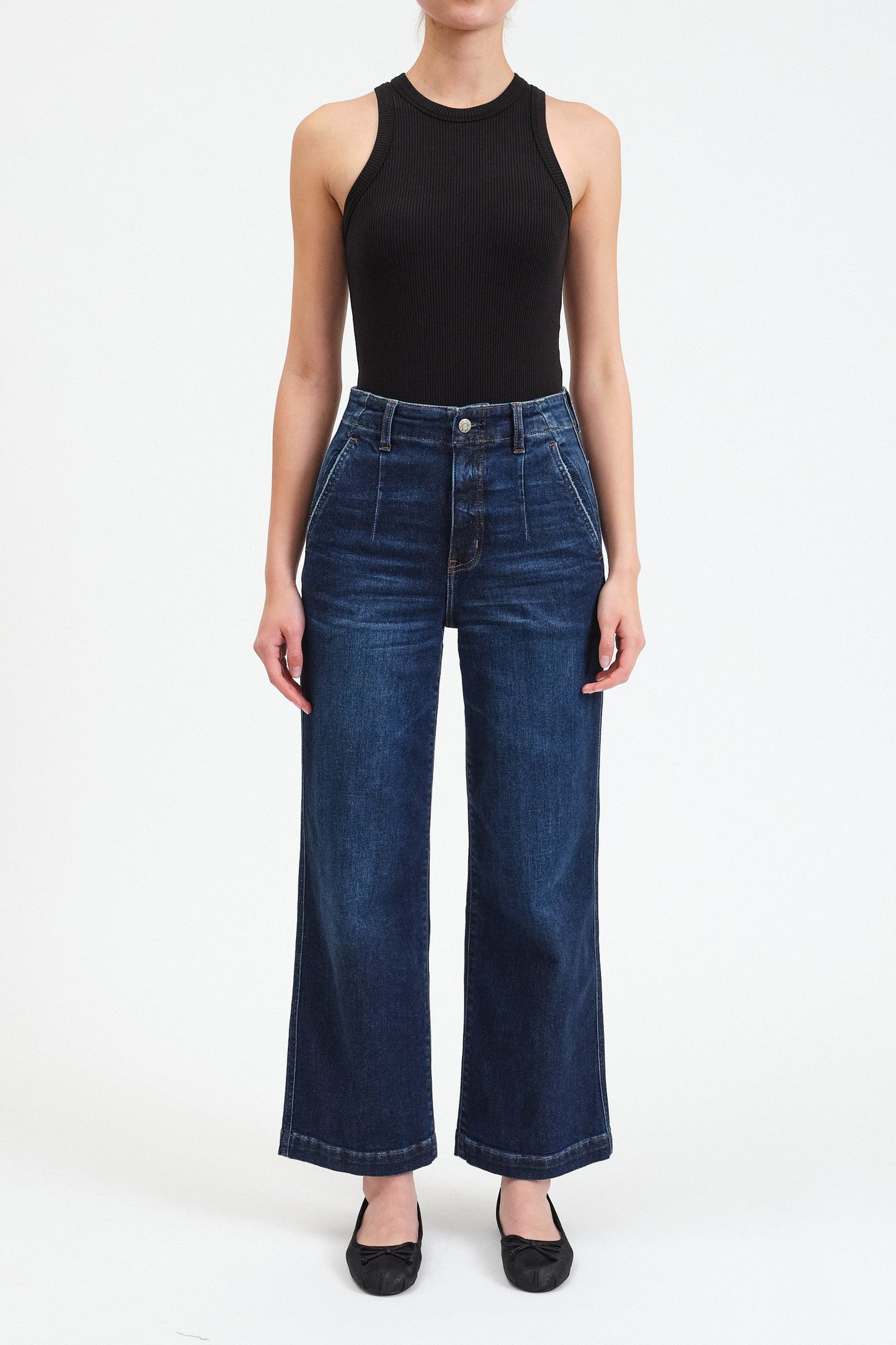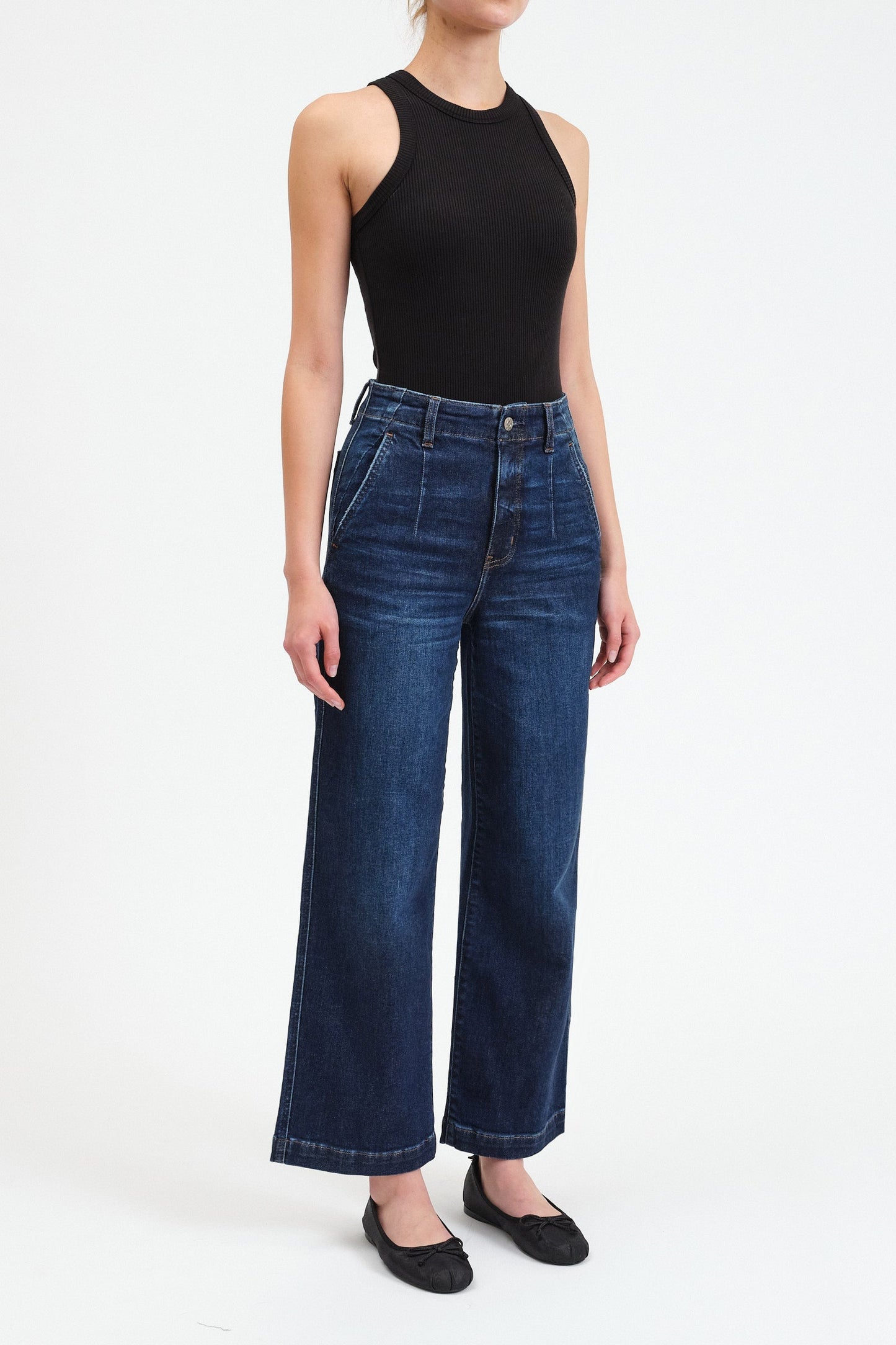 The Pleaser is our tried and true high rise wide ankle, featuring seaming details at the waist against a rich blue wash. Made of our Hug denim, this jean is flexible enough to hug your body, heavy enough to cinch you in.