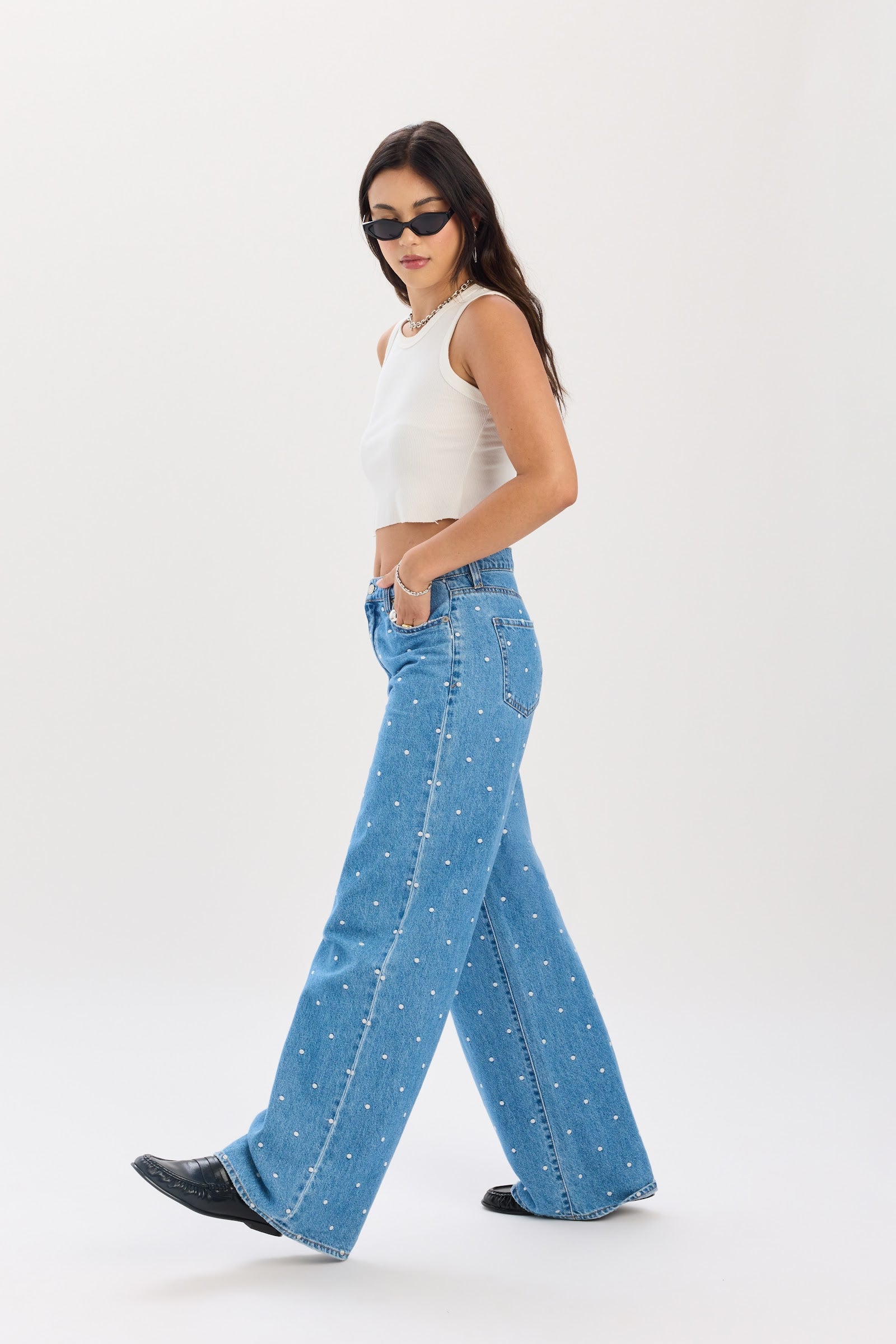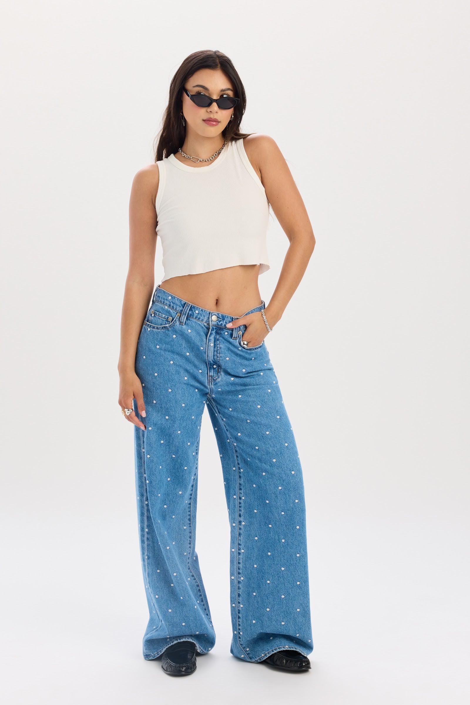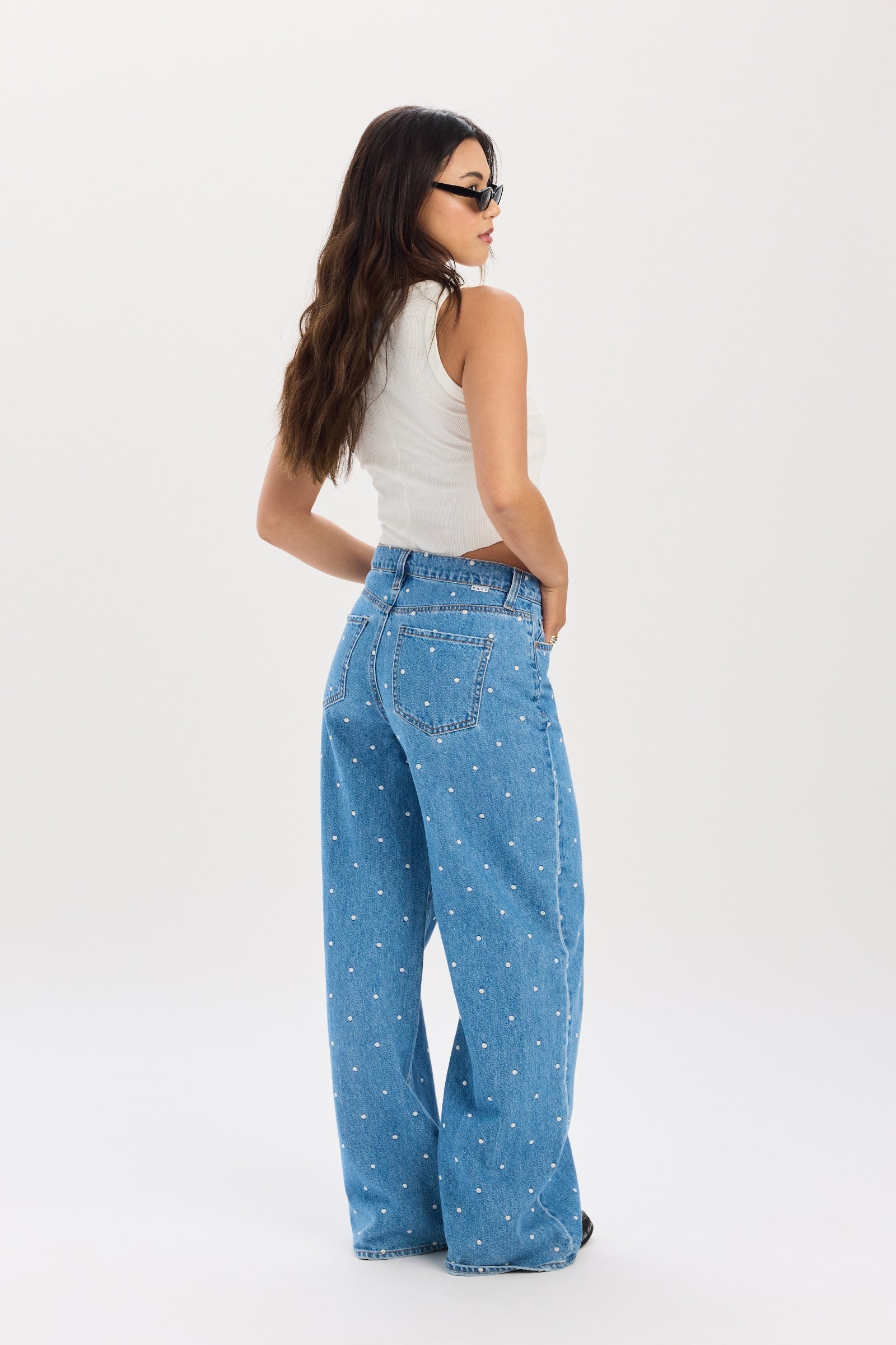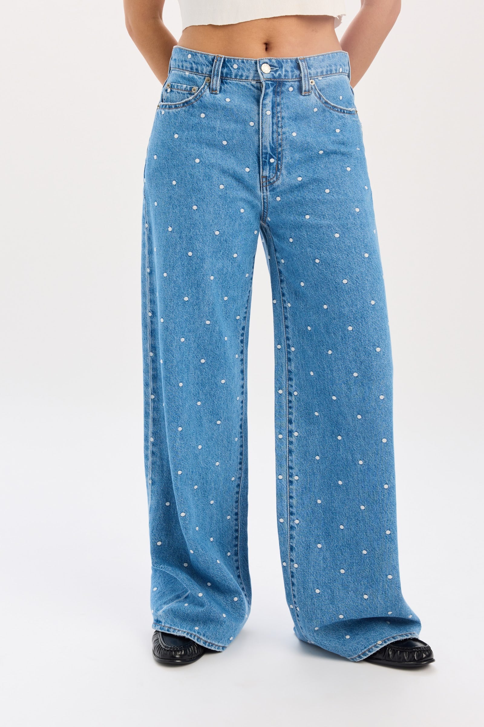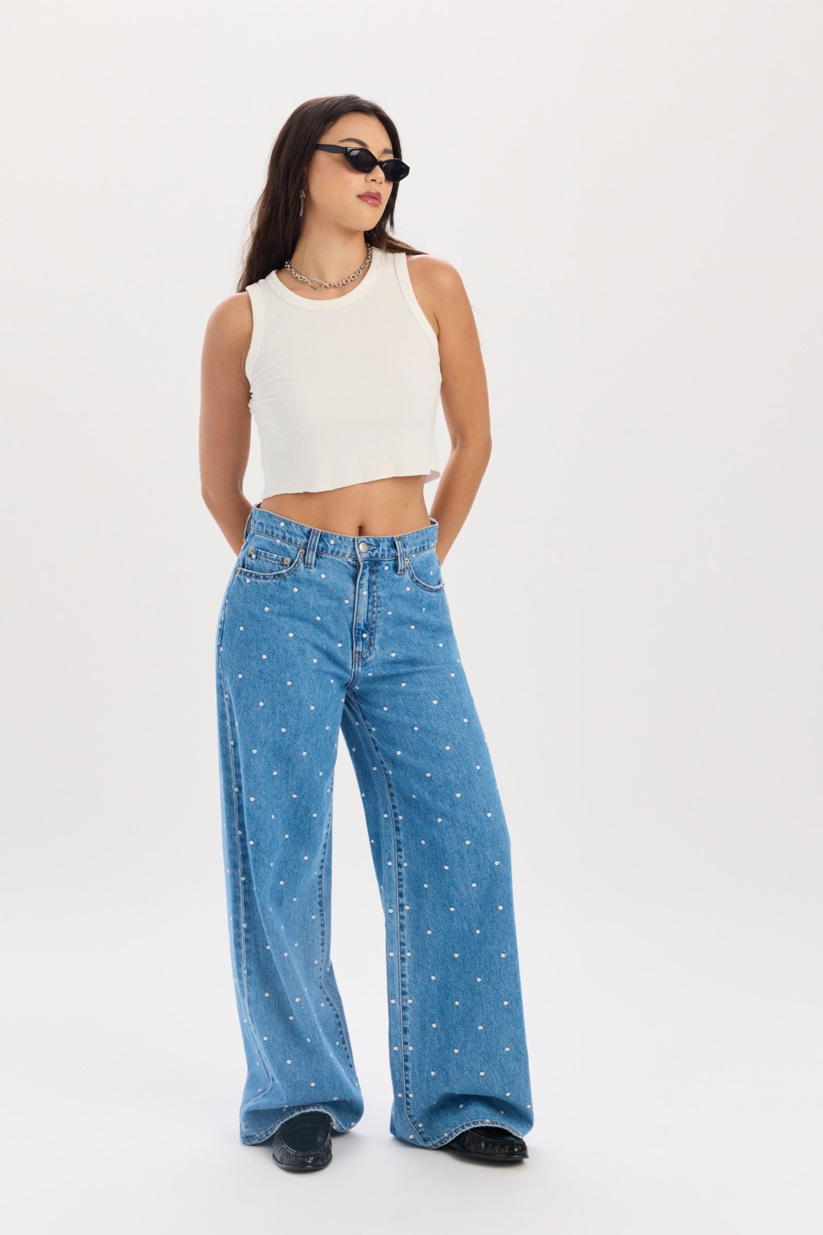 This mid rise palazzo jean brings serious drama in the best way. The waist sits comfortably relaxed, then opens into an easy, fluid wide leg that feels elevated yet effortless. The vintage-inspired wash gives it that sun-faded, well-traveled look, while the rigid denim keeps the silhouette clean and structured. Throw them on and let them do the talking.