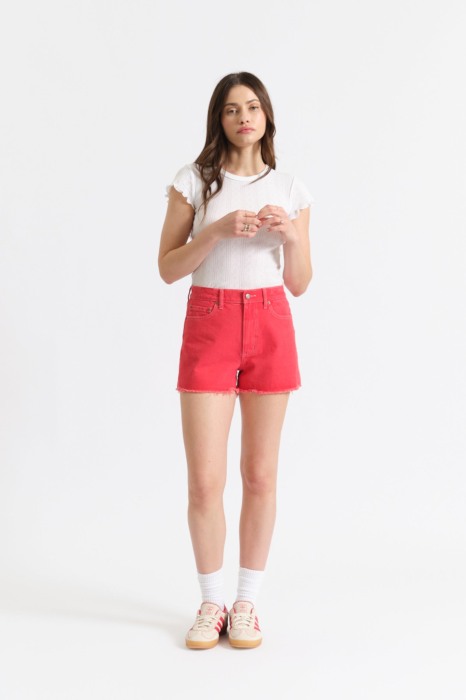 This high rise cutoff short is the definition of classic. A flattering rise, clean hem, and a bold chili pepper wash make it a standout staple you will wear on repeat. Made from our Comfort Stretch denim, it holds its shape while still moving with you so it feels broken in from day one.